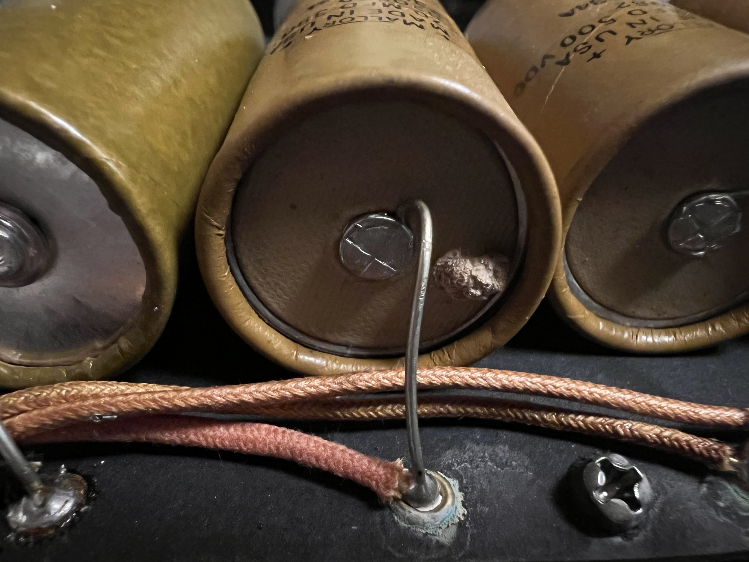 ~ $240-$300 for full electrolytic recap + grounded power cable for 20-100w amps (i.e. Deluxe through Twin Reverb, Vox AC30, most Marshalls) – reservoir, filter, bias, cathode bypass caps and associated resistors